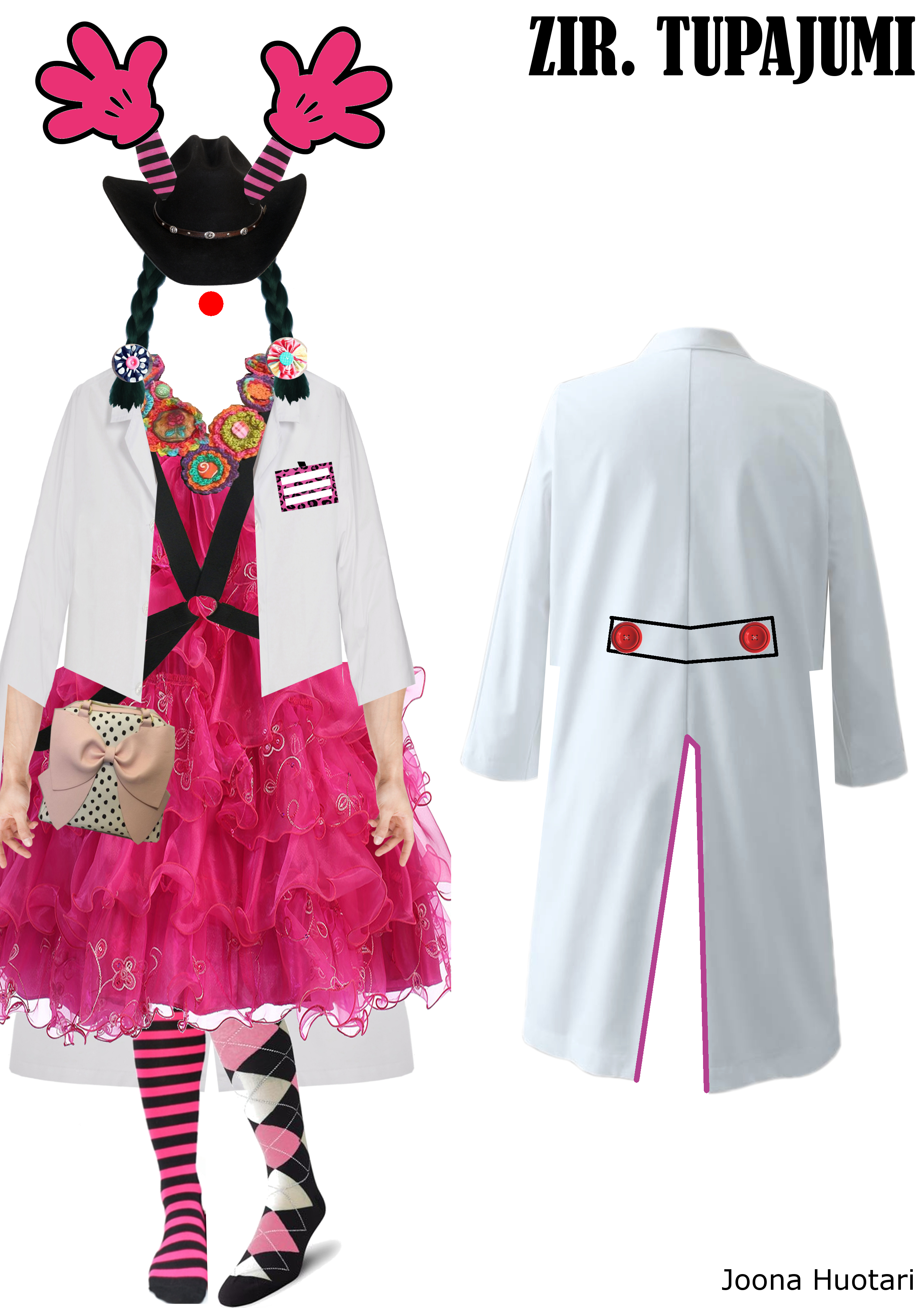"-- projektin tarkoituksena on nostaa sairaalaklovnien ammatillista statusta esiintymisasuilla, jotka täyttävät esiintymisasun ja työvaatteen asettamat vaatimukset. Suunnittelulla luodaan sairaalaklovneille yhteinen identiteetti, joka samalla tukee jokaisen klovnin persoonallisuutta. Suunnittelun keskiössä ovat leikkimieliset, toimivat ja sairaalan hygieniavaatimukset täyttävät työvaatteet. Tämä projekti tukee vahvasti myös Sairaalaklovnit ry:n fokusta kehittää toimintaansa vastaamaan Eurooppalaisia ECHCO:n (European Federation of Hospital Clown Organization) standardeja."